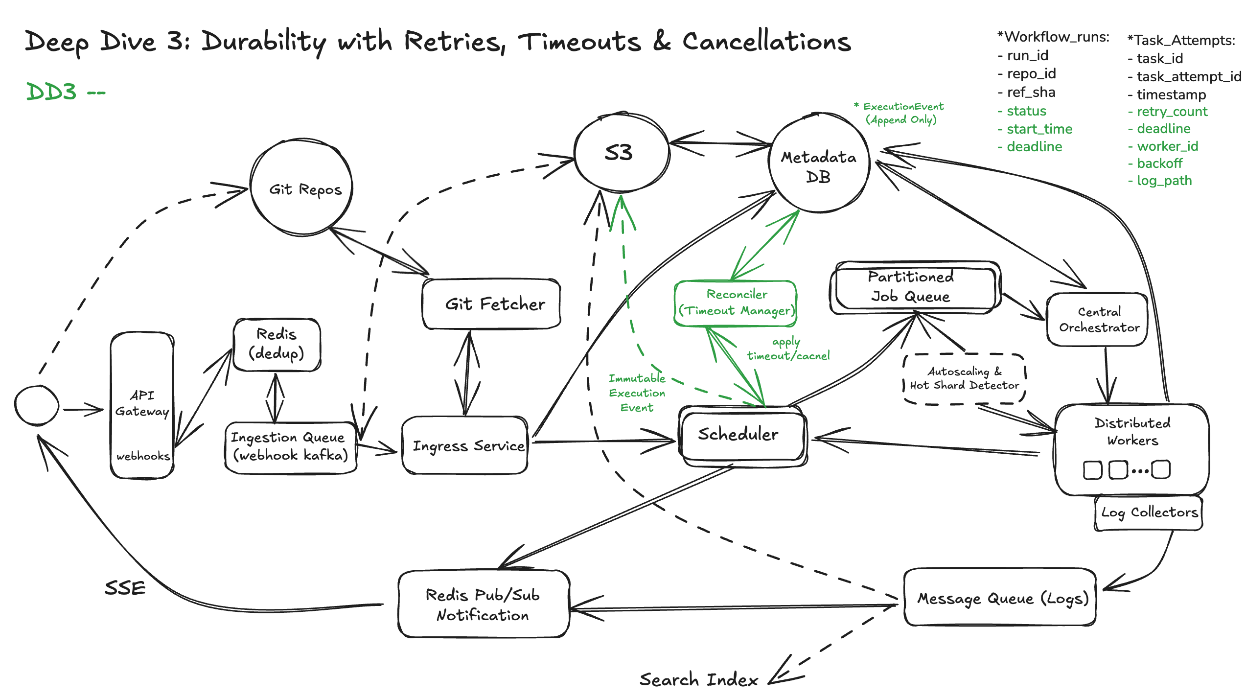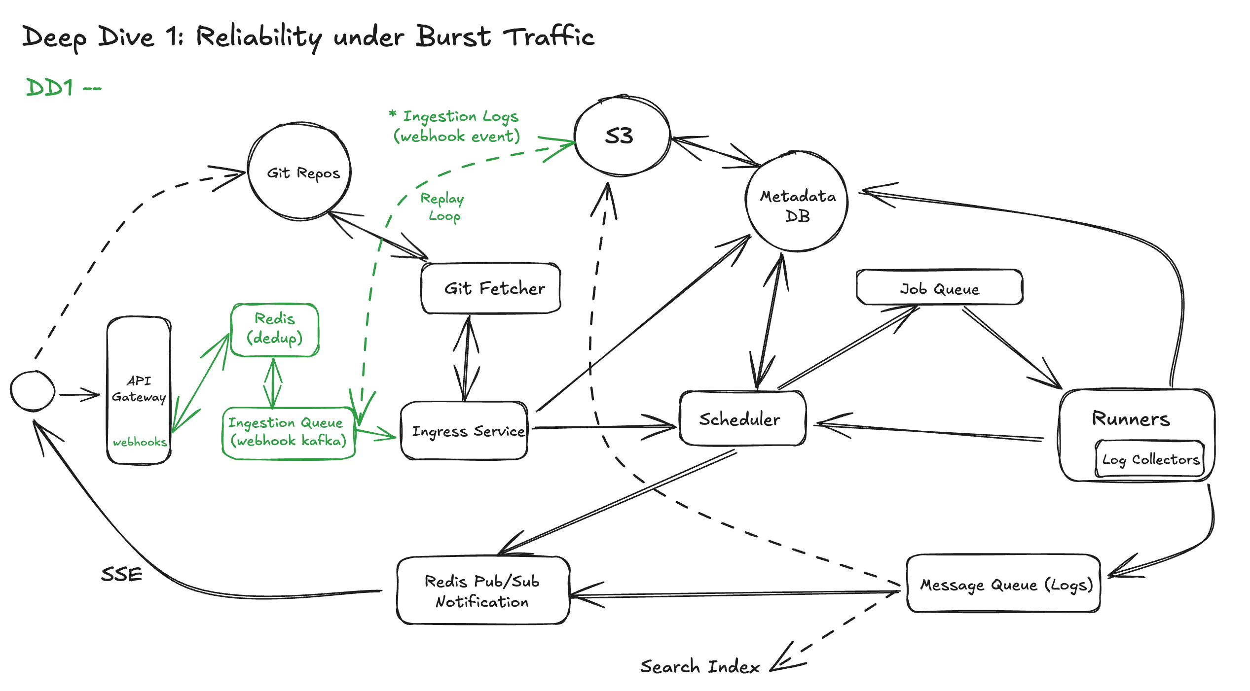 Git providers use at-least-once delivery, meaning the same event may be sent multiple times due to retries, delays, or transient network failures. Without protection, this can cause duplicate workflow runs, wasted compute, and inconsistent system state. It will be described more in DD 1.