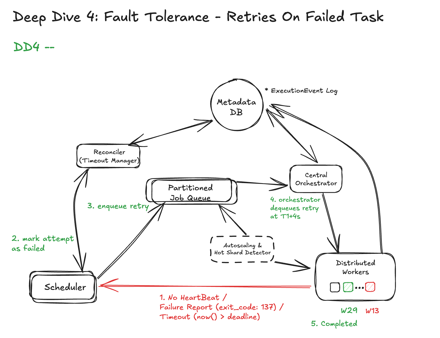 • Durable state persistence: The system should persist workflow state and artifacts so that execution can survive crashes, support recovery, and provide auditability.