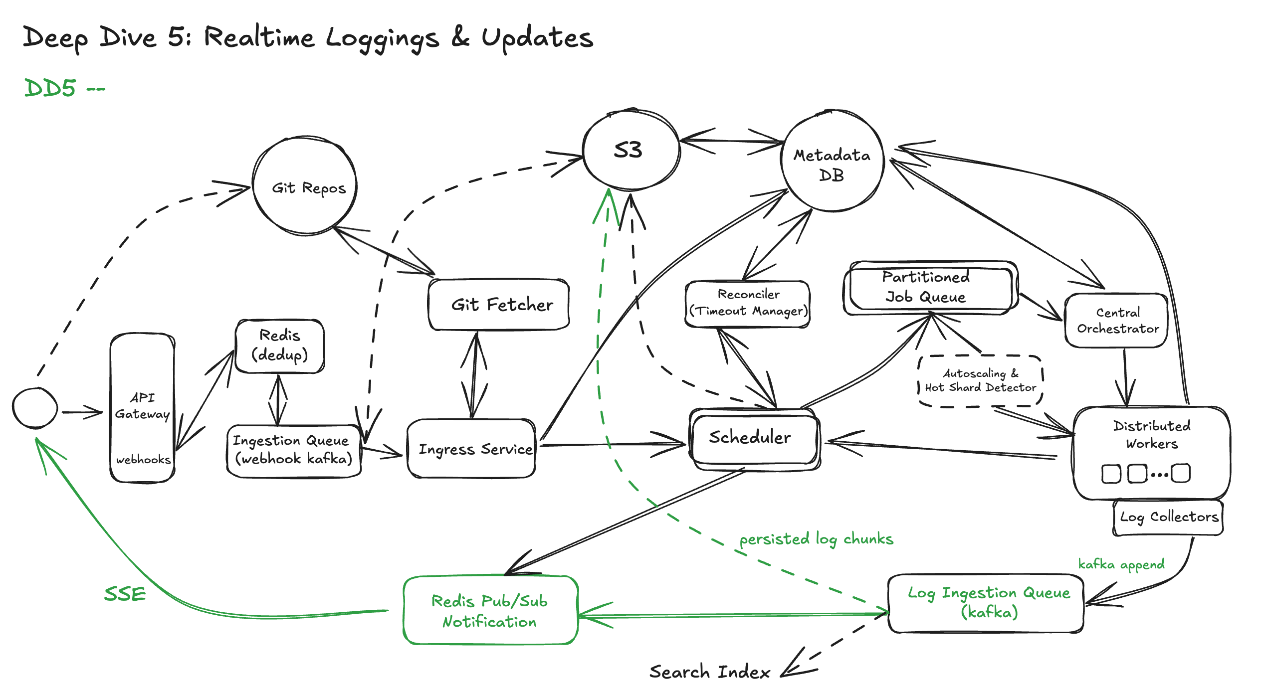 “Here we stream logs through Redis and flush to blob storage — I’ll highlight more around log fanout and buffering later if that’s of interest.”